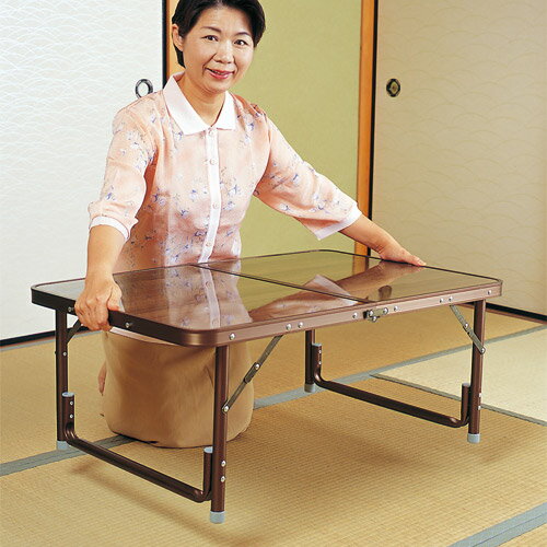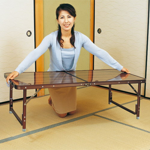 木目調軽量折りたたみテーブル(大) 価格: 8,800円 レビュー評価:0.0 レビュー数:0 パッと広げてサッと使える便利なテーブル。高さも2段階調節可能急な来客や趣味の時間に、サッと出して広げるだけ!和室で座卓としての使用はモチロン、延長ポールを取り付ければ、洋室にもピッタリの高いテーブルに早変わり。折り畳めば幅わずか約6.5cmで、収納に場所をとりません。軽量だから、持ち運びも楽々です。< 製品仕様 >■サイズ(約):幅120×奥行60×高さ37.5cm×重さ4.4kg/材質:天板=MDF(ポリマーコーティング)/他/耐荷重:約15kg■付属品:延長ポール4本、脚キャップ×4個■中国製※ディスプレイに表示された色とは、若干異なる場合がございます。 Supported by 楽天ウェブサービス |